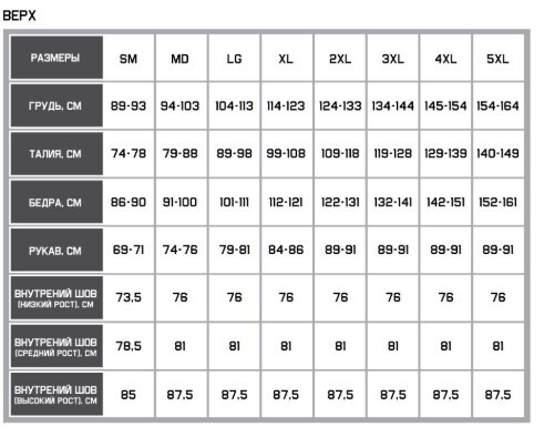 таблица размеров